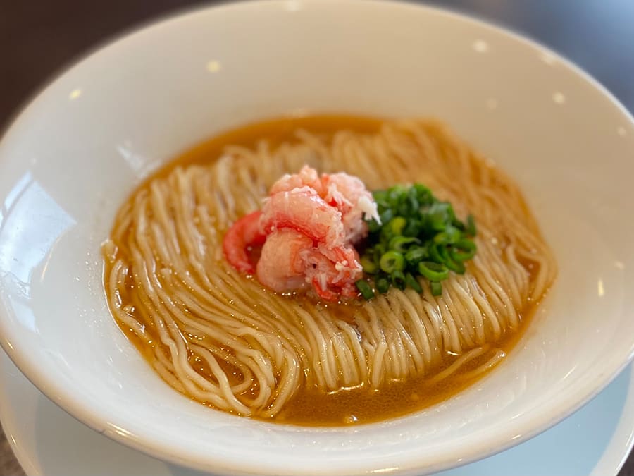 這款濃鬱的蟹肉拉麵使用了大量來自鳥取縣境港的紅雪蟹,蟹味噌和蟹肉湯汁香氣四溢。