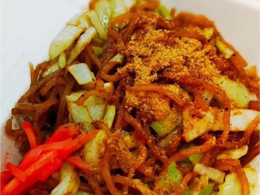 這是富士宮的一道名菜,用富有嚼勁的蒸麵、肉片和靜岡縣產的櫻桃蝦製成,與捲心菜和豆芽一起用醬汁翻炒,最後淋上大量沙丁魚絲。