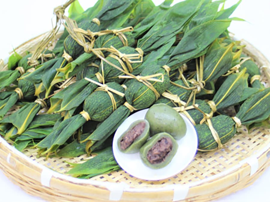 然後在麵團中加入用北海道產的紅豆製成的紅豆餡,再用一種叫做 “anko 製作機 ”的機器包起來,最後用新鮮的竹葉手工逐個包好。最後,蒸製完成。